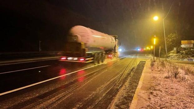 Bölgede görev yapan trafik ekipleri, sürücüleri kış lastiği ile yola çıkmaları ve dikkatli seyretmeleri konusunda uyardı.