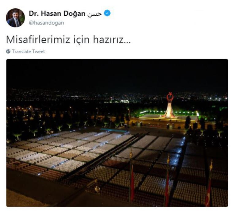 Cumhurbaşkanlığı Özel Kalem Müdürü Hasan Doğan da tören öncesi külliyenin son fotoğrafını "Misafirlerimiz için hazırız" mesajıyla paylaştı.