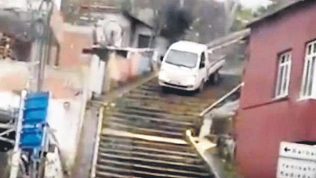 Sabah gazetesinden Emir Somer'in haberine göre, İstanbul'da bir sürücünün kamyonetle indiği merdivenleri üç aracın sürücüsünün 'kestirme' diye kullandığı belirlendi.