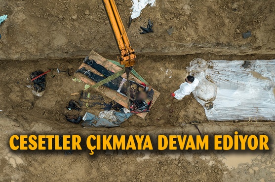 Rusya'nın Ukrayna'da saldırıları sürerken, Ukrayna'nın Kiev bölgesinde yer alan Bucha kentindeki kilisenin bahçesinde bulunan toplu mezardan cesetler çıkartılmaya devam ediyor. Geçtiğimiz günlerde Bucha'daki toplu mezardan 21 kişinin cansız bedeninin çıkartılmasının ardından bugün de çok sayıda cesede ulaşıldı. Cesetler vinç yardımıyla çıkartılırken, ceset torbasına koyulan cansız bedenler, kilisenin bahçesine dizildi.