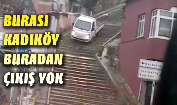 İHA'nın haberine göre olay İstanbul Kadıköy'de meydana geldi. Kestirmeden gitmeye çalışan bir kamyonet sürücüsü, yolu kullanmak yerine yayalar için yapılan merdiveni kullandı. Kemal Sunal filmlerini anımsatan olayda sürücünün kamyoneti ile merdivenlerden ağır ağır inişi cep telefonu kameralarına yansıdı. Görüntülerde kamyonetin ağır ağır merdivenlerden indiği görülüyor. Bu sırada okuldan çıkan iki çocuğun da merdivenlerden çıkmaya çalıştığı görüntülere yansıyor.