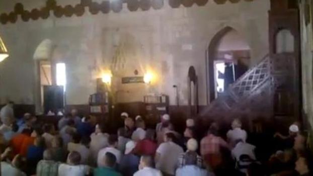 Görüntülerde, bir kişinin imama 'Allah belanızı versin. Siyaset yapıyorsun, kafirsin' dediği duyuluyor.