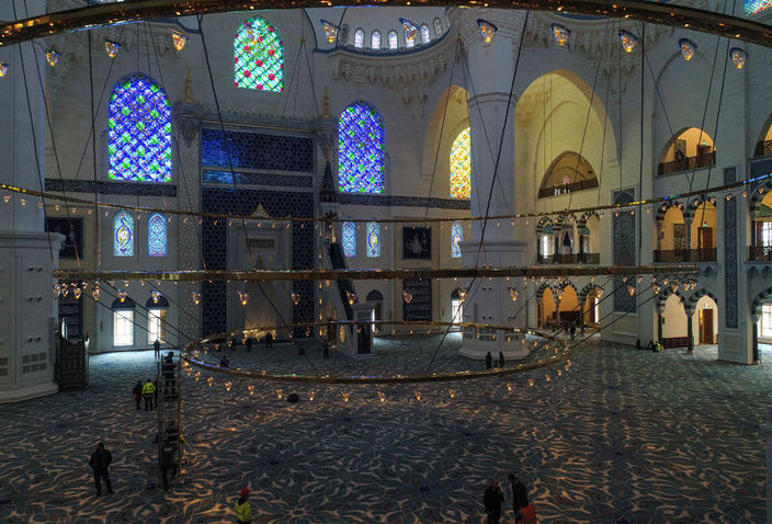 Çamlıca Camisi'ne yüzde yüz antibakteriyel özelliğe sahip, 17 bin metrekare büyüklüğünde özel dokuma halı serildi.