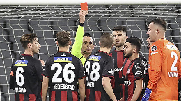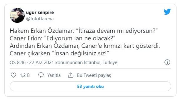 Ardından Erkan Özdamar, Caner’e kırmızı kart gösterdi.