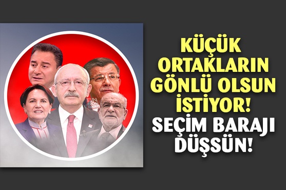 CHP Genel Başkanı Kemal Kılıçdaroğlu, kendisine gelen talepler üzerine ittifak kurduğu Saadet Partisi-İyi Parti ile yeni kurulan DEVA ve Gelecek Partisi'nin gelecek seçimlerde barajın altında kalmayıp Meclis'e girebilmesi için yüzde 10 seçim barajının düşürülmesini istedi.