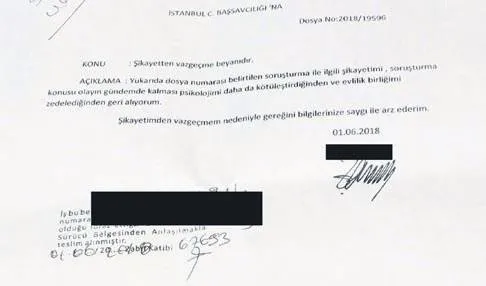 Mağdur Z.A., 01 Haziran 2018'de İstanbul Cumhuriyet Başsavcılığı'na geri çekme dilekçesi verdi. Şüpheli hakkında "Cinsel taciz" suçlamasıyla yürütülen soruşturmanın durdurulmasını talep eden mağdur kadın; savcılık dilekçesinde şunları kaydetti: İlgili şikayetimi, olayın gündemde kalması psikolojimi daha da kötüleştirdiğinden ve evlilik birliğimi zedelediğinden geri alıyorum. Şişli Belediyesi'ne ait Kentyol A.Ş. tarafından 11 Haziran 2018'de mağdur Z.A. ve yine belediye çalışanı kocasına toplam 37 bin 620 lira tazminat ödendi.