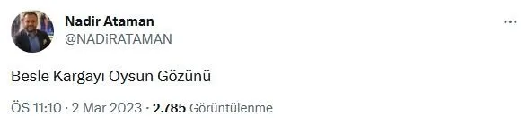 CHP'li İBB Üyesi Nadir Ataman, Kemal Kılıçdaroğlu'nun adaylığına karşı çıkan Meral Akşener ve İYİ Parti'ye sert çıktı. CHP'nin İYİ Parti'ye seçimlere katılabilmesi için 15 vekil vermesini üstü kapalı olarak hatırlatan Ataman, "Besle kargayı oysun gözünü" dedi.6'lı koalisyonun 12'nci toplantısı sonrası ortalık karıştı. Masada ortak uzaşı sağlandığı bildirilse de, sonrasında yaşananlar krizi gözler önüne serdi. CHP'liler ile İYİ Partililer, Kılıçdaroğlu'nun adaylığı sonrası birbirine girdi. Meral Akşener, masada Kılıçdaroğlu ismine karşı çıkan tek isim olurken, kurmaylarını olağanüstü topladı. Bu gelişmenin ardından CHP kanadından dikkat çeken bir eleştiri geldi.