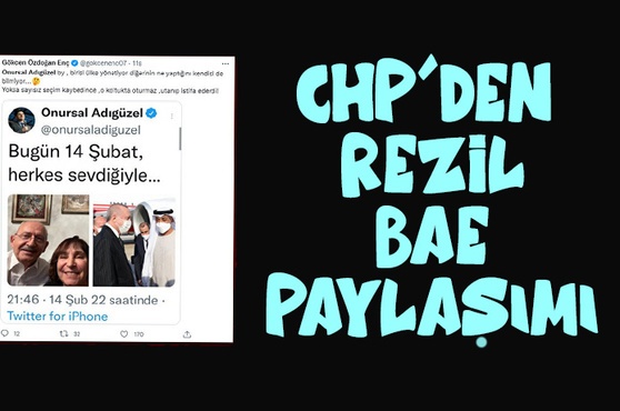 Adıgüzel, CHP Genel Başkanı Kemal Kılıçdaroğlu ile eşi Selvi Kılıçdaroğlu'nun fotoğrafı ve Başkan Recep Tayyip Erdoğan ile Abu Dabi Veliaht Prensi Şeyh Muhammed bin Zayid Al Nahyan'ın fotoğrafını paylaşarak "Bugün 14 Şubat, herkes sevdiğiyle…"notunu düştü.