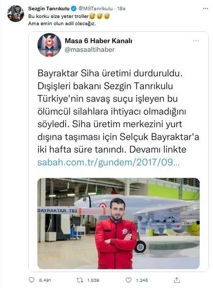 SİHA tesisinin kapatılıp Bayraktar''ın ülke dışına postalanacağı tweetini sayfasında paylaşın CHP milletvekili yetmez gibi Selçuk Bayraktar'ın yargılanacağını ima ederek, "Emin olun adil olacağız" dedi.