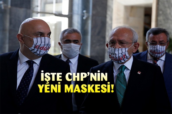 CHP'liler, Atatürk'ün imzasını taşıyan maskelerin yerine üzerinde adalet yazan maskelerle objektiflere poz verdi.