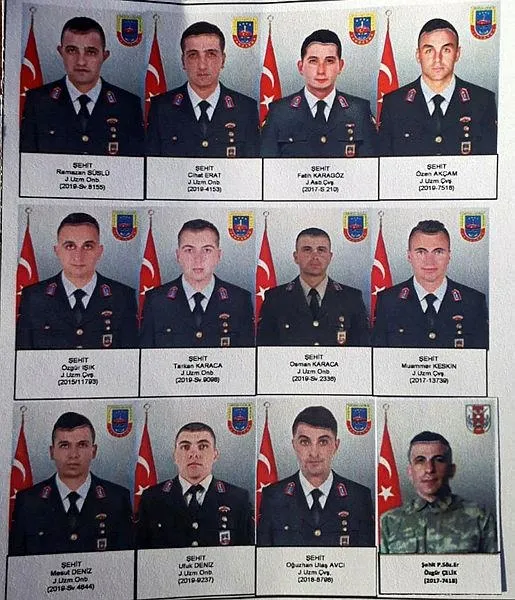 Şehitler Uzman Çavuş Özgür Işık (Düzce Merkez), Uzman Çavuş Özen Akçam (Artvin, Ardanuç), Uzman Çavuş Ramazan Süslü (Aksaray, Sultanhanı), Uzman Çavuş Ufuk Deniz (Kastamonu, Tosya), Jandarma Astsubay Çavuş Fatih Karagöz (Kocaeli, Kartepe), Uzman Onbaşı Osman Karaca (Tokat, Almus), Uzman Onbaşı Cihat Erat (Erzurum, İspir), Uzman Çavuş Muammer Keskin (Aydın, Çine), Uzman Çavuş Oğuzhan Ulaş Avcı (Kars, Arçapayı), Uzman Çavuş Mesut Deniz (Kahramanmaraş, Türkoğlu), Uzman Onbaşı Tarkan Karaca (Eskişehir, Sivrihisar), Piyade Sözleşmeli Er Özgür Çelik (Kayseri, Develi), Van'ın Çatak ilçesinden güvenlik korucuları Hekim Kazgan, Nimet İnçamur, Abdulselam Mantaş, Tahsin Karan, Bayram Bulcar, Metinb Mantaş ve Mehmet Esen için Van Jandarma Filo Komutanlığında tören düzenleniyor.