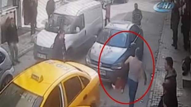 Güngören’de bir ticari taksiyi gasp ettikten sonra kız çocuğunun boğazına sokak ortasında bıçak dayayan babaya vatandaşlar son anda engel oldu. Akıllara durgunluk veren olay saniye saniye kameralara yansırken şahıs, polis ekiplerince gözaltına alındı.