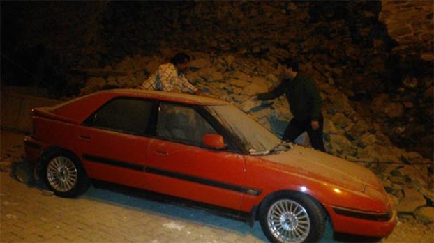 Çöken duvar 2 araca zarar verdi