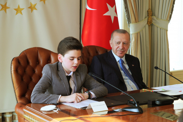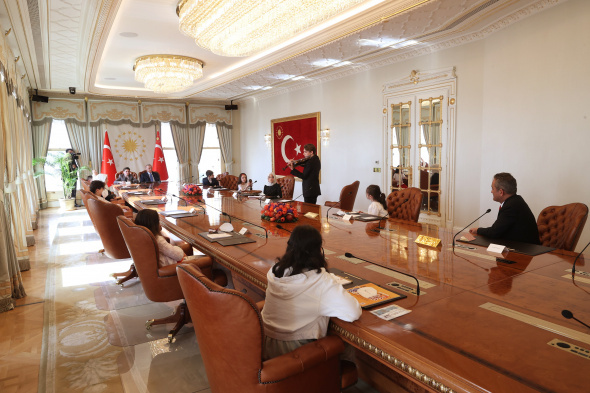 Cumhurbaşkanı Recep Tayyip Erdoğan, Vahdettin Köşkü'nde Milli Eğitim Bakanı Mahmut Özer ve beraberindeki çocukları kabul etti.