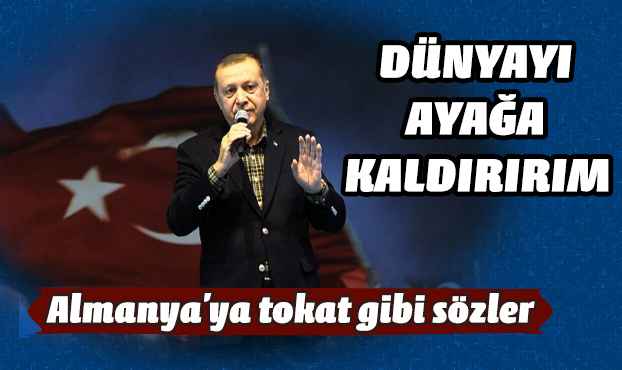 - Bütün bu olayların nedeni meğerse bu teröristmiş. Bu adam terörist, gazeteci değil ve Alman yönetimi ne yazık ki, benim bakanlarımı böyle bir teröristle aynı teraziye oturtuyor. Sıkıntı burada. Ondan sonra da benim Başbakanıma 'Bu kadar sert davranılmaması lazım' diyor. Ben Nazizmin Almanya'da bittiğini zannediyordum, meğerse halen devam ediyormuş. Açık ortada. Eğer demokrasiye inanıyorsan benim bakanım, hem bakanınla görüşecek, hem salon toplantısı yapacak. Neden rahatsız oluyorsun? Baktık ki Hollanda da aynı şekilde açıklama yapmış, vah zavallı vah. Bunlar kendi iradeleriyle hareket etmiyorlar. Zannediyorlar ki Erdoğan Almanya'ya gelecekti. Ben istersem gelirim. Ve kapıdan da sokmadığınız zaman da dünyayı ayağa kaldırırım.
