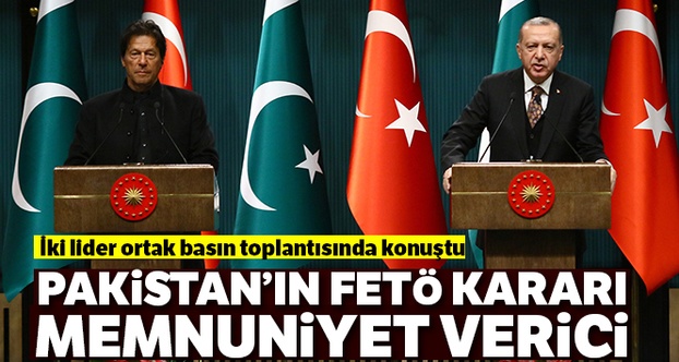 FETÖ'nün bir terör örgütü olduğunu Pakistan Yüksek Mahkemesinin ilan ettiğini hatırlatan Erdoğan, “Pakistan Yüksek Mahkemesinin aldığı karara karşı memnuniyetimizi kendilerine ifade ettik. Bir yandan da okulların Maarif Vakfına teslimi memnuniyet verici adımlardı. Bundan sonraki süreçte bu dayanışmanın devam edeceğine inanıyorum” diye konuştu.