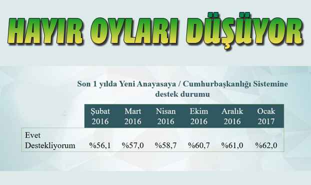 Ocak 2017; Evet destekliyorum diyenlerin oranı yüzde 62