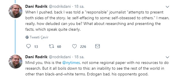 Konuyla ilgili son paylaşımında ise Rodrik, New York Times’ın araştırma yapmak için yeterli kaynakları bulunmayan herhangi bir bölgesel gazete olmadığına vurgu yaptı. Netice olarak da meselenin şundan ibaret olduğunu söyledi: