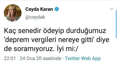 MHP'den ihraç edilen eski milletvekili Sinan Oğan ve gazeteci Ceyda Karan deprem vergilerini gündeme getirdi. Gelecek Partisi Genel Başkan Yardımcısı Selçuk Özdağ, deprem sonrası "Gölcük depreminden bugüne 21 yıl geçti, o günden bugüne Devleti yönetenler ellerini vicdanlarına koysunlar ve sorsunlar: "Kentsel dönüşümle ilgili yaptıklarımız yeterli mi?Ülkemizi ahlaki olarak yönettik mi?Depreme karşı insanımızı ve binalarımızı hazırladık mı?El cevap maalesef!!!" diye yazdı. Daha deprem yeni olmuş ve enkaz altında kalanlar varken siyaset yapılmasına ve bundan nemalanmaya çalışılmasına vatandaşlar tepki gösterdi.