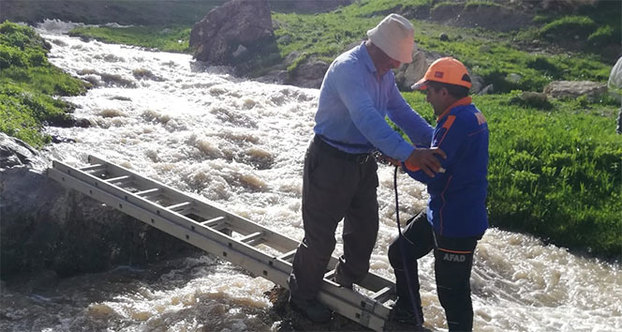 Bölgeye giden AFAD ekibinin başarılı çalışmasıyla her iki dere yatağına merdiven uzatılmak suretiyle pancar toplamaya giden vatandaş kurtarıldı.