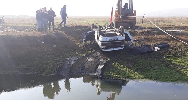 Balıkesir'in Manyas ilçesinde meydana gelen trafik kazasında dereye uçan araçta 2 kişi hayatını kaybetti.