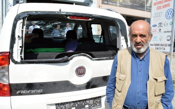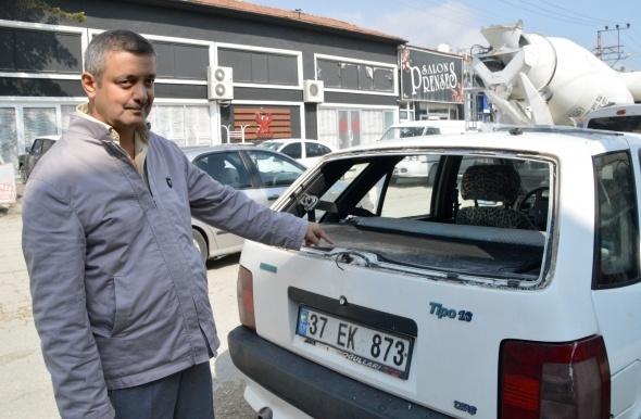 Dolu yağışı bir, iki dakikada oldu. Aracımın zararı 3 bin, 3 bin 500 lira ortalamasında. Arka cam kırıldı, ön cam kırıldı.