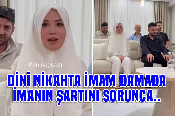 Dini nikahı sırasında çekilen bir videoda, imama "İslam'ın şartları nedir?" sorusuna "Sırası önemli mi?" yanıtını veren damat izleyenleri güldürdü. Gelinin "Ne yapacağım ben?" tepkisi ise olayı başka bir boyuta taşıdı.