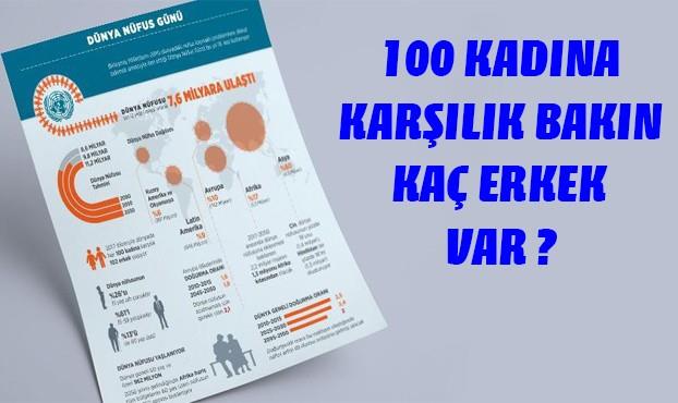 Erkek nüfusu kadınlara oranla daha fazla. 2017 itibarıyla dünyada her 100 kadına karşılık 102 erkek yaşıyor.