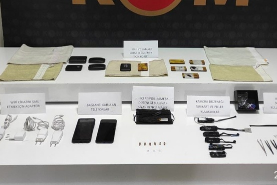 Yakalanan şüpheliler üzerinde yapılan aramalarda, 17 adet bağlantı kablosu, 14 adet pil, 15 adet kamera ve kamera aparatı, 5 adet kablosuz ağ, 6 adet kulaklık, 6 adet GPS cihazı, 7 adet kopya çekmek için kullanılan kumaş parçası, 6 adet düğme, cımbız gibi suçta kullanılan malzeme, 2 adet cep telefonu ve sim kartları olmak üzere toplam 78 adet cihaz ve malzeme ele geçirildi.