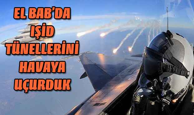 Askeri kaynaklardan alınan bilgiye göre, Türk Silahlı Kuvvetlerince, Suriye'nin kuzeyindeki terör hedeflerine yönelik başlatılan Fırat Kalkanı Harekatı devam ediyor. Harekat kapsamında, terör örgütü DEAŞ'a ait hedeflere yönelik hava harekatı düzenleyen Türk Silahlı Kuvvetlerine ait savaş uçakları, teröristlerin yoğun şekilde kullandığı bazı tünelleri bombaladı.