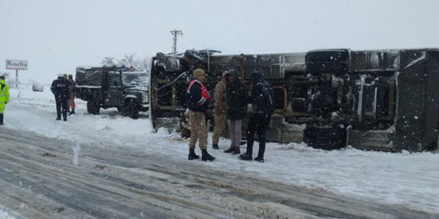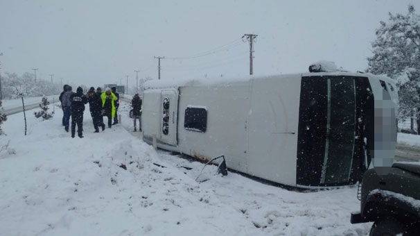 Elazığ'da işçileri taşıyan servis aracının devrilmesi sonucu 16 kişi yaralandı.