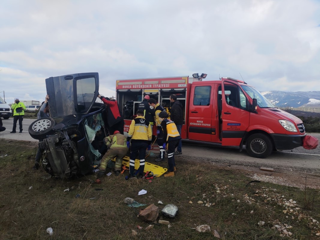 Orhangazi'de çiçekçilik yapan Meryem Avcı, hurdaya dönen araçta sıkıştı. Avcı'ya ilk müdahaleyi yoldan geçen araçların sürücüleri yaptı. İhbar üzerine kaza yerine sağlık ve itfaiye ekipleri sevk edildi. İtfaiye ekinin çalışması ile araçtan çıkartılan Avcı, ambulansla Orhangazi Devlet Hastanesi'ne sevk edildi.