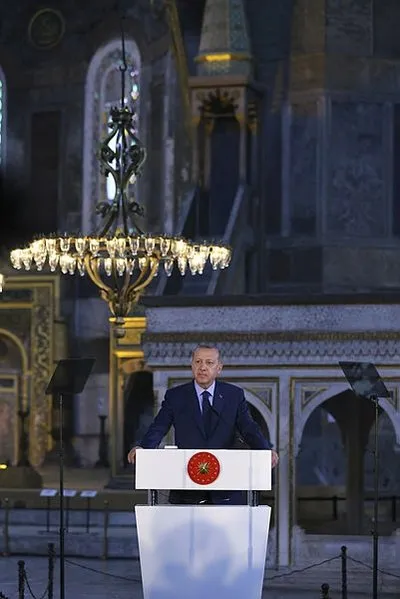 Cumhurbaşkanı Recep Tayyip Erdoğan, Ayasofya'da İstanbul Yeditepe Bienali açılışında konuştu. Oldukça duygusal olduğu gözlenen Cumhurbaşkanı Erdoğan, konuşmasına böyle başladı: Heyecanlıyım, duygusalım... Öyle zannediyorum ki bu muhteşem ve mübarek kubbenin altında konuşmak hele hele garip asırlardan sonra konuşmak zor. Birçok duygusallığı da beraberinde getiriyor. İşte Cumhurbaşkanı Erdoğan'ın Ayasofya'da yaptığı konuşmadan öne çıkan başlıklar...