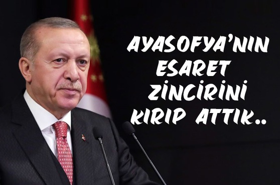 Erdoğan : Ayasofya'nın esaret zincirini kırıp attık