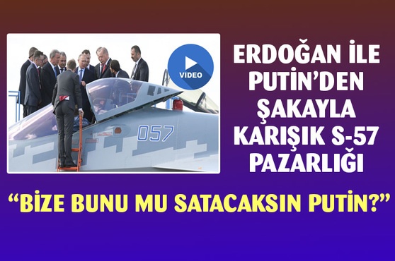 Cumhurbaşkanı Recep Tayyip Erdoğan, açılışına katıldığı MAKS-2019 Uluslararası Havacılık fuarında Türkiye'nin Rusya'dan almayı planladığı Su-57 uçağını inceledi. Rusya Devlet Başkanı Vladimir Putin, beşinci nesil Rus Su-57 savaş uçağını, Türk mevkidaşı Erdoğan’a anlattı. Bu arada Erdoğan ile Putin arasında eğlenceli SU-57 pazarlığı yaşandı İşte o diyalog: Erdoğan: Bu uçuyor mu? Putin: Bugün göstereceğiz. Erdoğan: Biz bundan mı alacağız Putin: Alabilirsiniz.