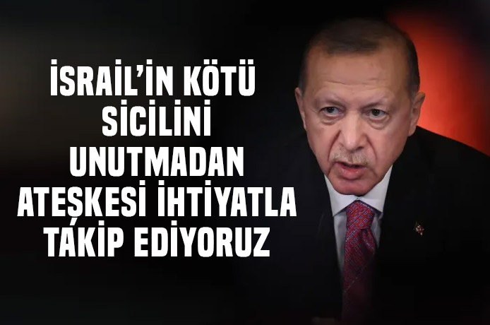 Erdoğan : İsrail'in kötü sicilini unutmadan Gazze'deki ateşkesi ihtiyatla ve dikkatle takip ediyoruz.