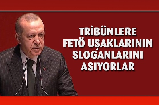 Erdoğan : Tribünlere FETÖ uşaklarının sloganlarını asıyorlar