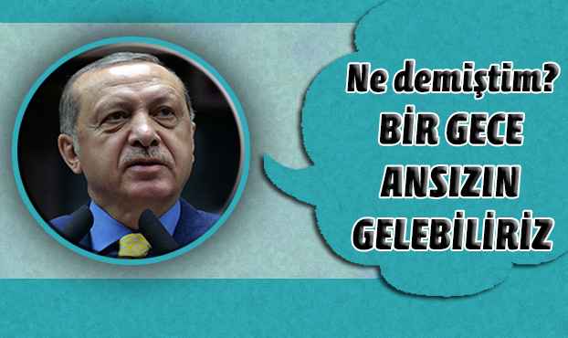 Terörle mücadele konusunda önemli açıklamalarda bulunan Cumhurbaşkanı Erdoğan, "Eğer topraklarımıza bir taciz olursa biz sağa sola bakmadan gereğini yaparız. Bundan kimsenin şüphesi olmasın. Ne demiştim? Bir gece ansızın gelebiliriz" dedi.