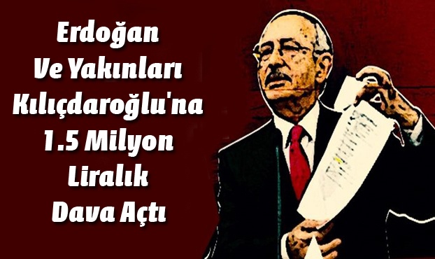 Cumhurbaşkanı Recep Tayyip Erdoğan ve yakınları, haklarında iddialarda bulunan CHP Genel Başkanı Kemal Kılıçdaroğlu'ndan 1 milyon 500 bin lira manevi tazminat istedi. Cumhurbaşkanı Erdoğan, oğlu Ahmet Burak Erdoğan, eniştesi Ziya İlgen, kardeşi Mustafa Erdoğan, dünürü Osman Ketenci ve iş adamı Mustafa Gündoğan'ın avukatları tarafından hazırlanan dilekçe, İstanbul Anadolu nöbetçi asliye hukuk mahkemesine sunuldu.