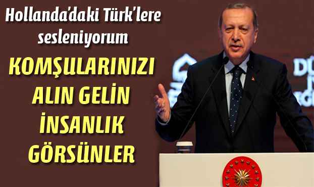 Yurt dışında yaşayan Türk vatandaşlarına çağrıda bulunan Cumhurbaşkanı Erdoğan, "Komşularınızı alın gelin, evsahipliği nedir görsünler."dedi