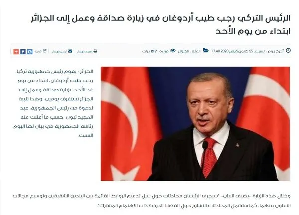 Başkan Erdoğan'ın Cezayir ziyareti Arap dünyasında geniş yankı buldu