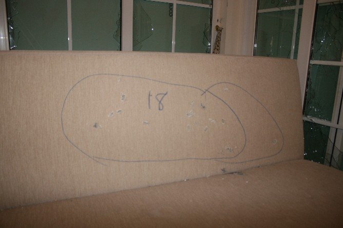 Mermi isabet eden odanın duvarları delik deşik olduğu görülürken koltuk ve sandalyelerinde mermilerin hedefi olduğu görülüyor.