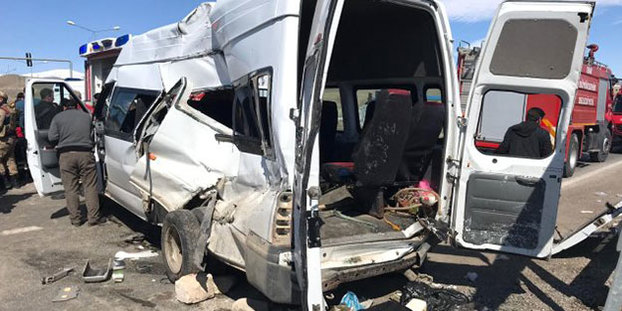 Alınan bilgilere göre kaza, Van-Hakkari karayolu üzerindeki Gürpınar yol ayrımı yakınlarında meydana geldi. Cumhurbaşkanı Erdoğan'ın bugün katılacağı miting için Hakkari'ye gitmek üzere yola çıkan polisleri taşıyan midibüsle Başkale istikametinden gelen yolcu minibüsü çarpıştı. Kazada 6'sı polis 15 kişi yaralandı