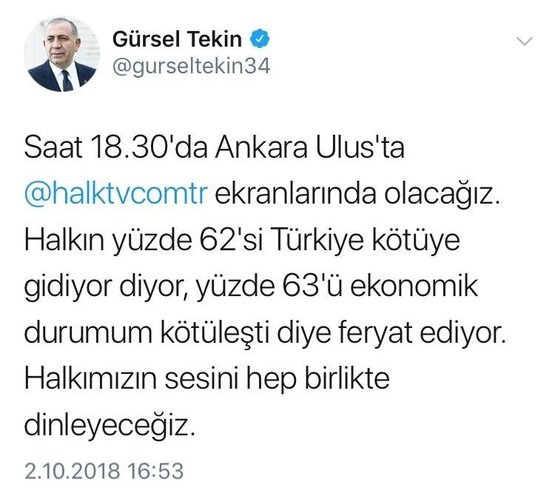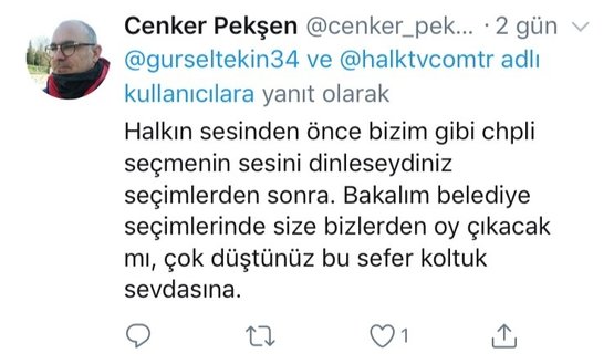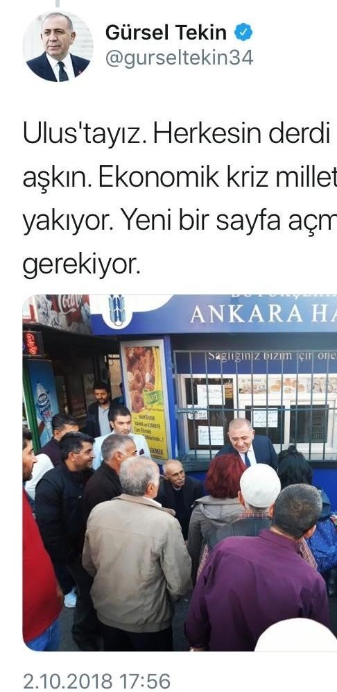 Erdahan Yılmaz, "İşlerimiz çok şükür iyi. Ekonomi çok kötü değil. Bundan iyisi can sağlığı. Cumhurbaşkanımız dört dörtlük insan. Cumhurbaşkanımız Recep Tayyip Erdoğan'ı Allah başımızdan eksik etmesin. Terör meselesi, kürt sorunu desen her şeyi çözüyor" dedi. Dur durak bilmeyen, her seçim öncesi esnafın yanındayım diye naralar atan Gürsel Tekin'in attığı o tweetler emekçiyi kandırmaya yetmedi.