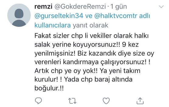 Tepki gösteren vatandaşlar "Hâlâ fikrinizin meyvelerinden zehirlendiğimiz günleri unutmadık", "Hiçbir yol haritanız yok. Yaptığınız tek şey eleştiri. Artık CHP'ye oy yok" şeklinde tweetler atıldı.