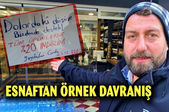 Cumhurbaşkanı Recep Tayyip Erdoğan'ın açıklamalarının ardından dolar kurunda büyük bir düşüş yaşandı. Bu düşüşün ardından Kocaeli'nin Gebze ilçesinde küçük bir dükkan işleten esnaf, örnek olacak bir davranışa imza attı. Büyük zincir marketlerin indirim yapması beklenirken 2 buçuk senedir Gebze'de şarküteri dükkanı işleten Esnaf Dursun Yıldırım, sattığı ürünlerde yüzde 20 indirim uyguladı. Yıldırım, vatandaşların ürünlerin eski fiyatlarını da görmesi için etiketlerdeki fiyatları değiştirmedi. Yıldırım'ın bu davranışı ise vatandaşlardan takdir gördü.