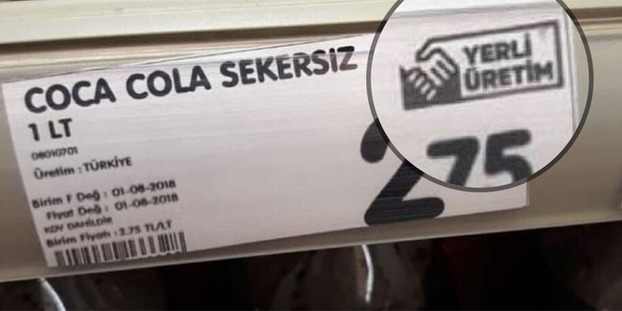 Öyle ki nereye ait olduğu tüm kamuoyunun malumu olan ‘Coca Cola’ markasına ‘yerli logo’ basıldı.