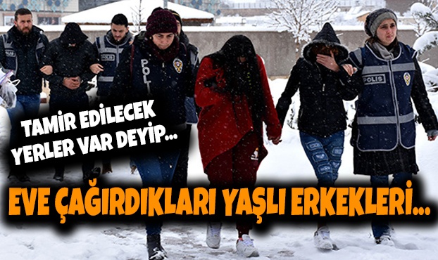 Alibaba Mahallesi'nde oturan ismi açıklanmayan yaşlı 2 kişi, polise başvurup bazı kişilerin kendilerinden şantaj yoluyla para aldığını söyleyerek şikayetçi oldu. Çalışma başlatan Sivas Emniyet Müdürlüğü Asayiş Şubesi Cinayet ve Gasp Büro Amirliği ekipleri, Ç.A. ve Y.A. adlı akraba 2 kadının, yaşlı erkeklerle yakınlık kurup, 'Tamir edilmesi gereken yerler var, bana yardımcı olur musun?' diyerek evlerine davet ettiğini tespit etti. Yaşlı adamlar evdeyken, kadınların akrabaları olduğunu öne sürdükleri bazı kişilerin evi bastığı saptandı.