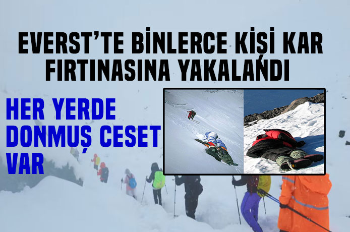 Çin'in Tibet Özerk Bölgesi'nde bulunan Everest Dağı'nın doğu yamacında etkili olan şiddetli kar fırtınası nedeniyle yaklaşık 1000 kişi kamplarda mahsur kaldı. Bölgeye sevk edilen kurtarma ekibinin, donmuş cesetler arasında yol aldığı görüldü.