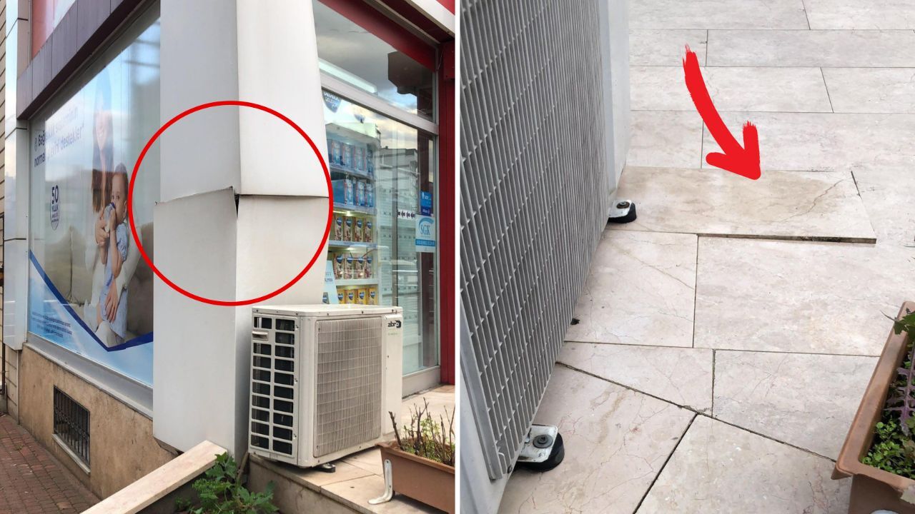 Fotoğraflarda binanın zemininde kaymalar olduğu görüldü.